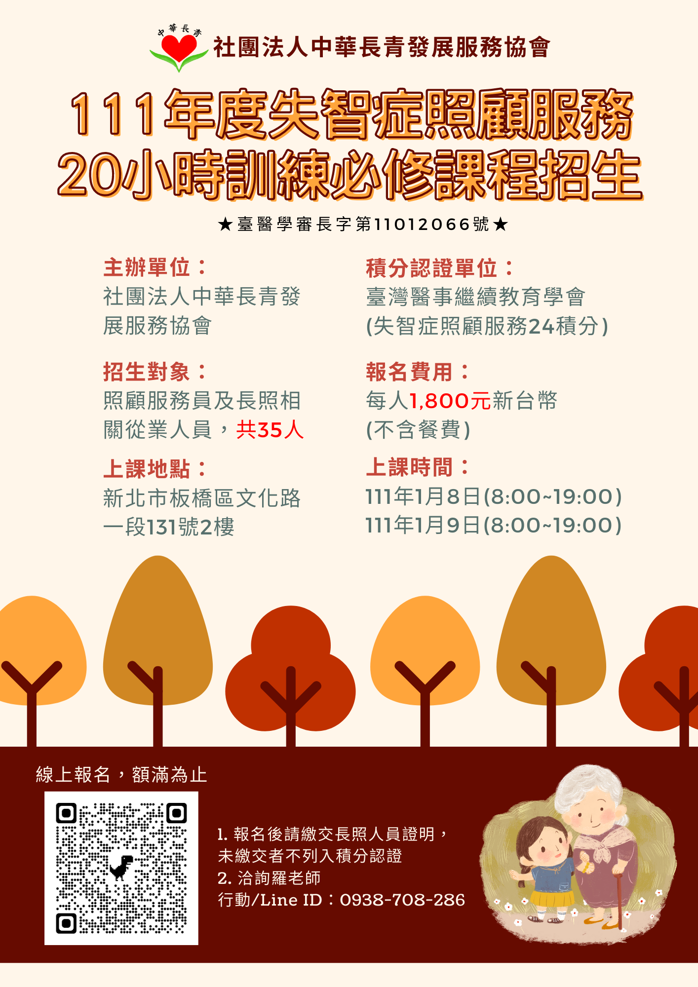 📢111年度失智症照顧服務20小時訓練課程第一期招生📢