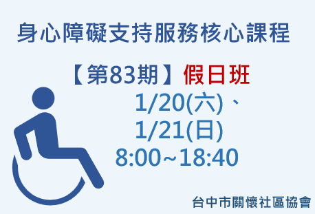 113年度 照顧服務員繼續教育-身心障礙支持服務核心課程【第83期假日班】