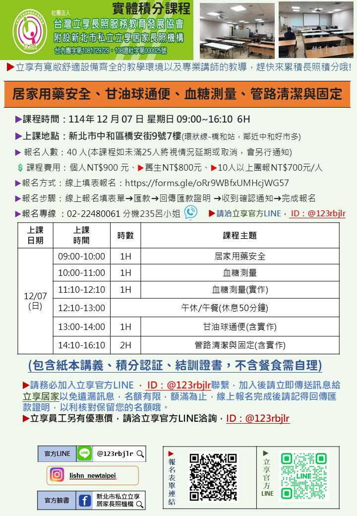⭐課程:【居家用藥安全、甘油球通便、血糖測量、管路清潔與固定】實體積分課程