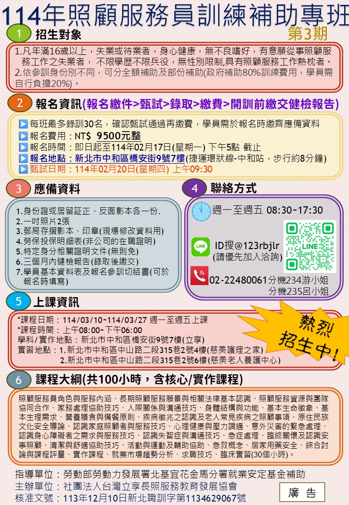 114年度照顧服務員專班訓練補助班