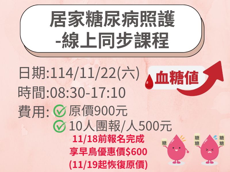 【線上同步課程】居家糖尿病照護(7小時)