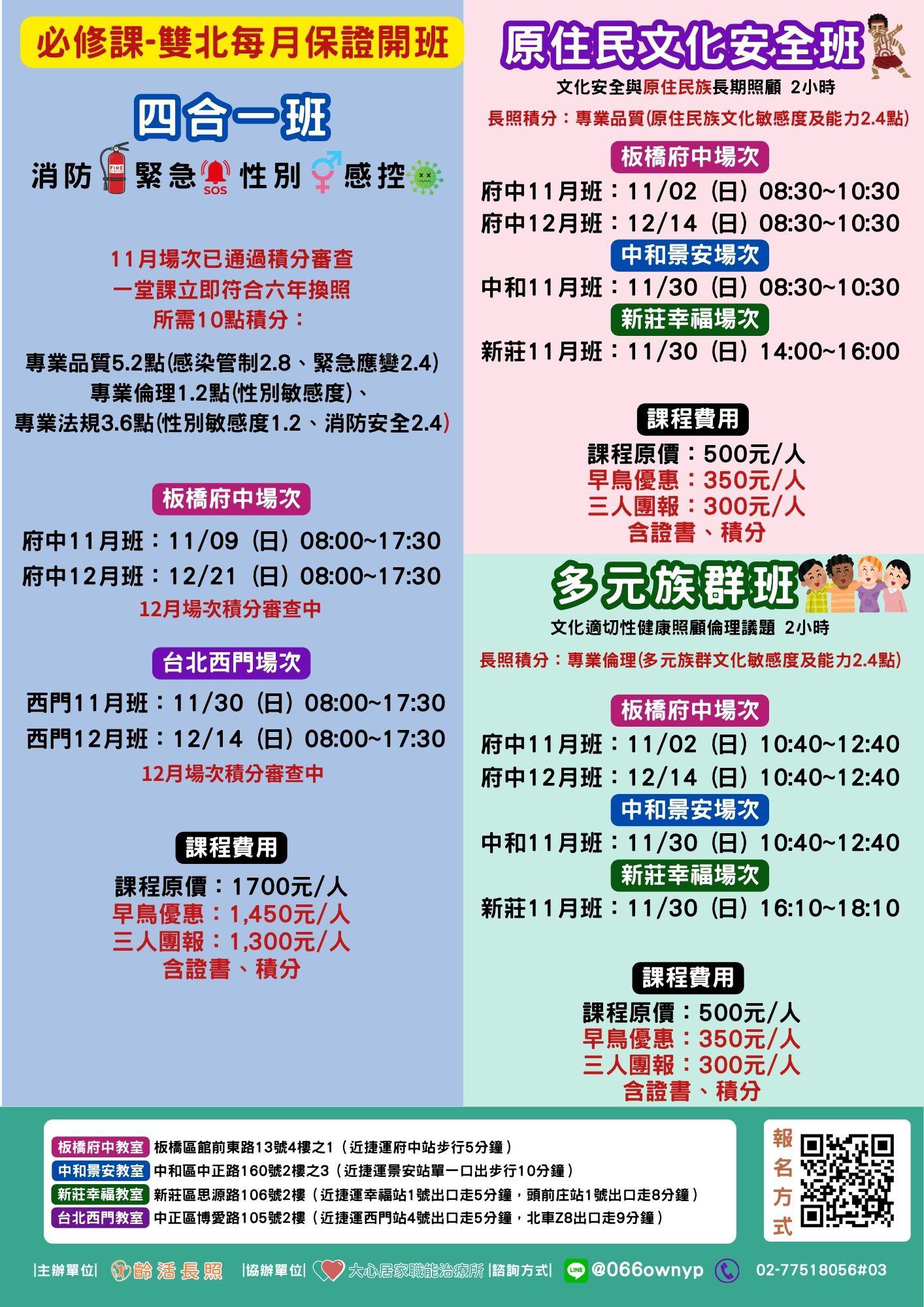 ✦ 長照繼續教育課程積分數: 專業品質(原住民族文化敏感度及能力2.4點)