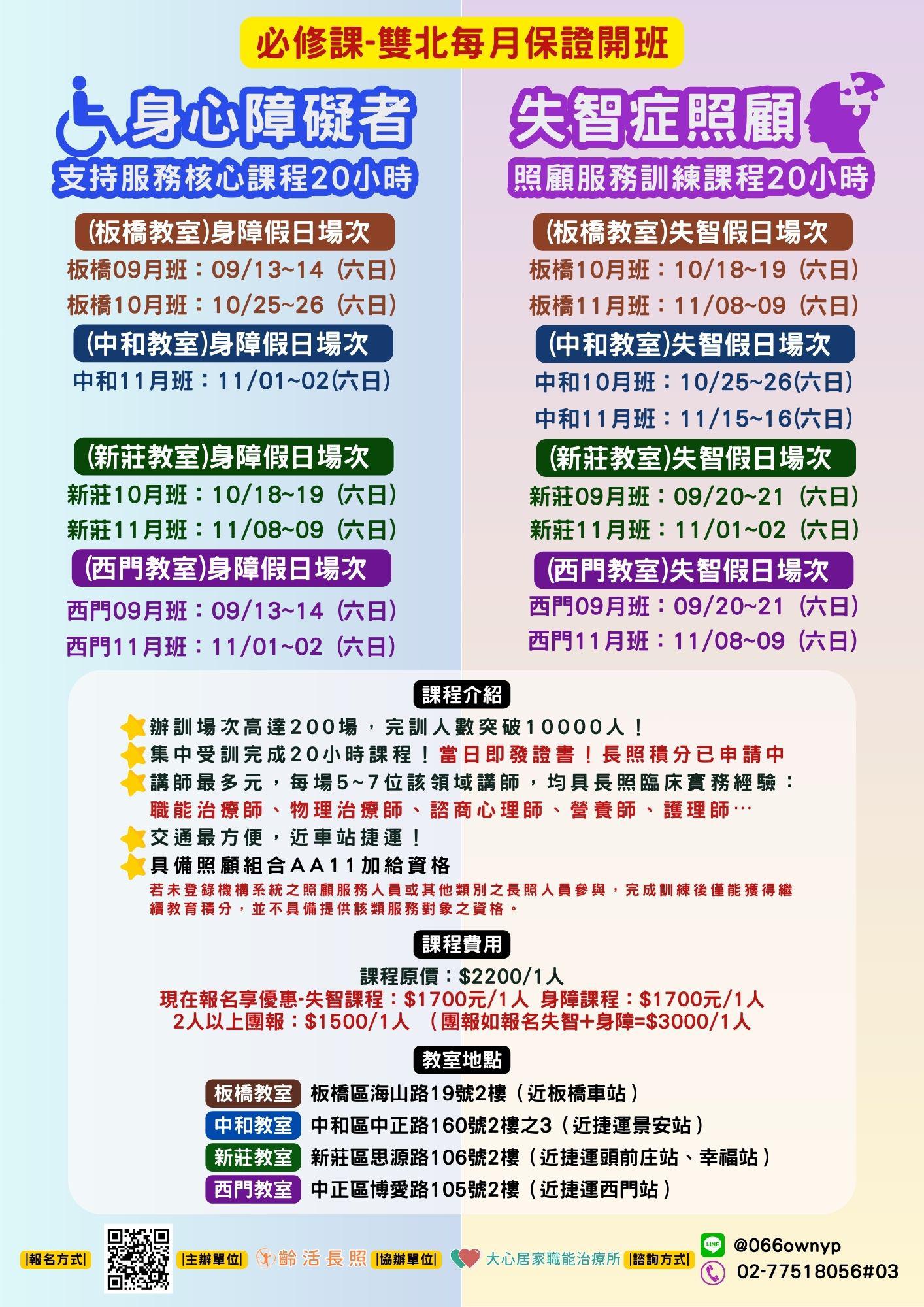 (中和)十月失智班:10/25~10/26 (六 日) 08:00~19:00