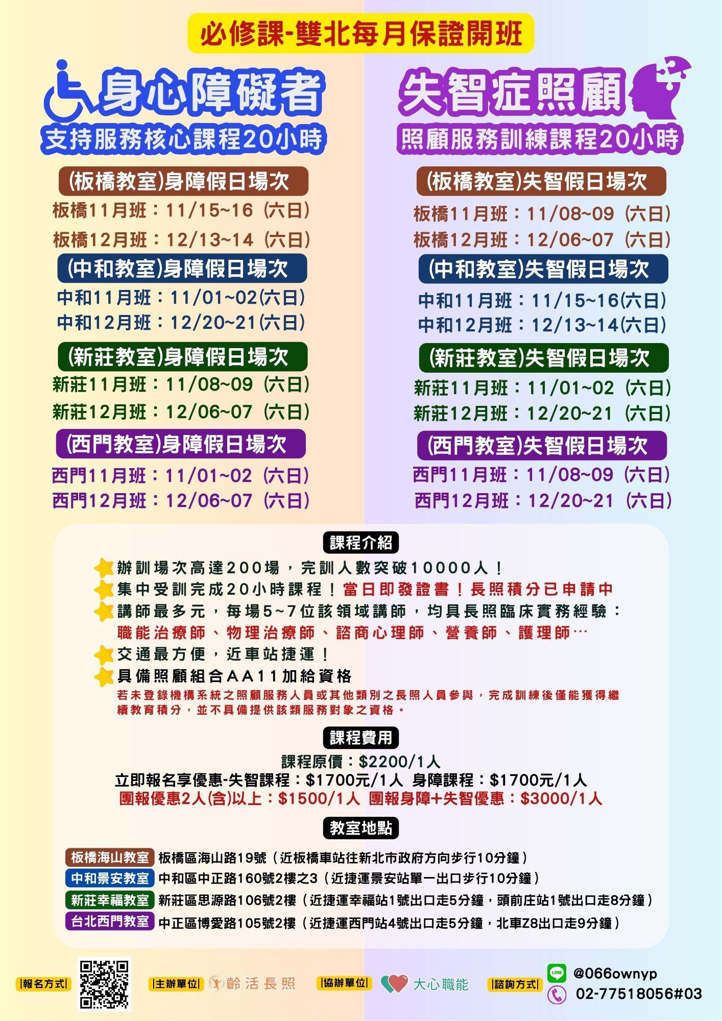 (新莊)十一月身障班:11/8~11/9 (六 日) 08:00~19:00