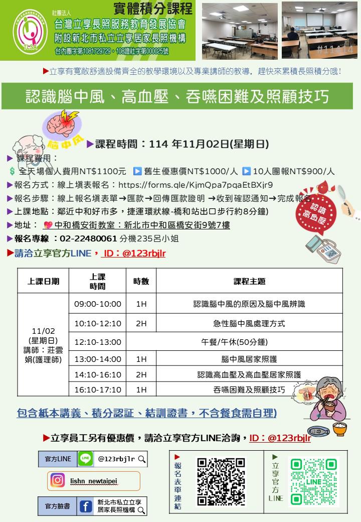 ⭐課程:【認識腦中風、高血壓、吞嚥困難及照顧技巧】實體積分課程