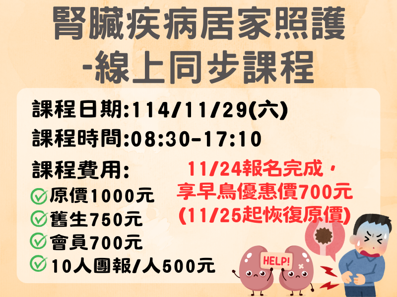 【線上同步課程】腎臟疾病居家照護(7小時)