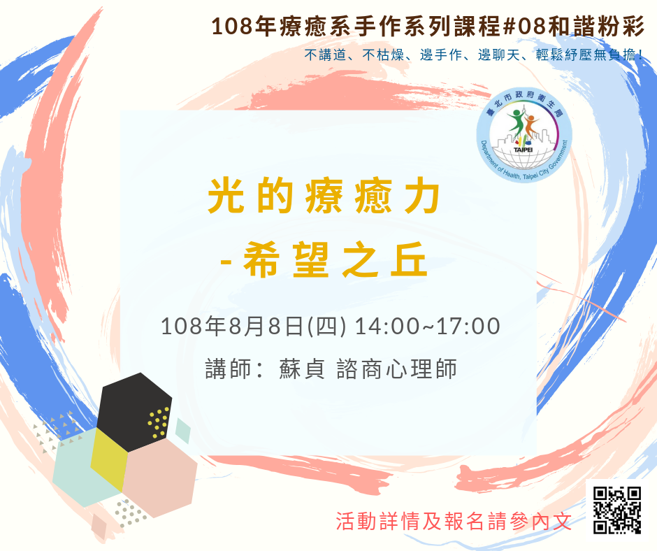 1.108年療癒系手作系列課程主要針對《初次接觸心理相關課程者》設計,故以當年度首次參與本中心活動者優先錄取。(由主辦單位審核報名資訊)
