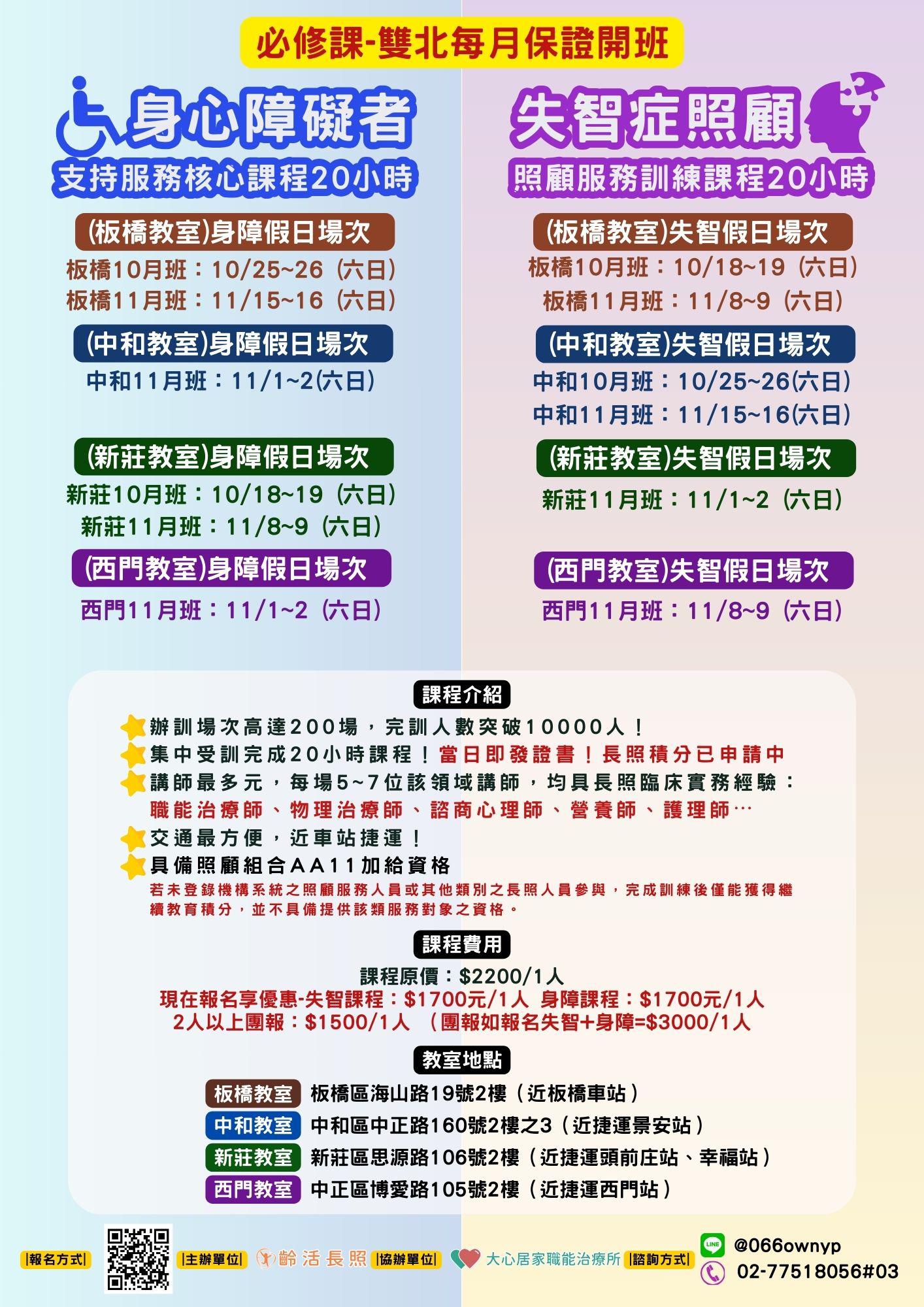 (西門)十一月失智班:11/8~11/9 (六 日) 08:00~19:00