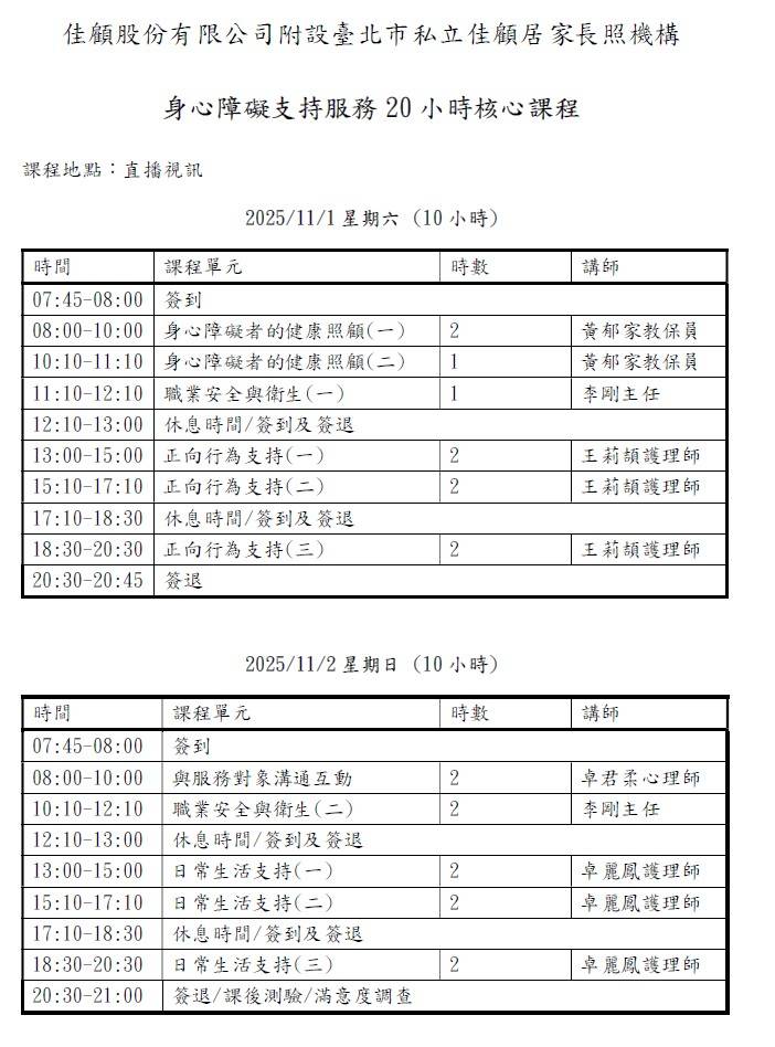 課程時間:114/11/01 (星期六) 08:30-20:30、114/11/02 (星期日) 08:30-20:30 (課後有測驗)