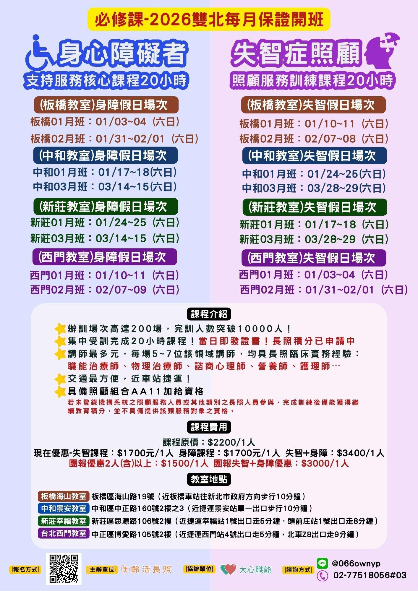 (中和)一月身障班:01/17~01/18 (六 日) 08:00~19:00