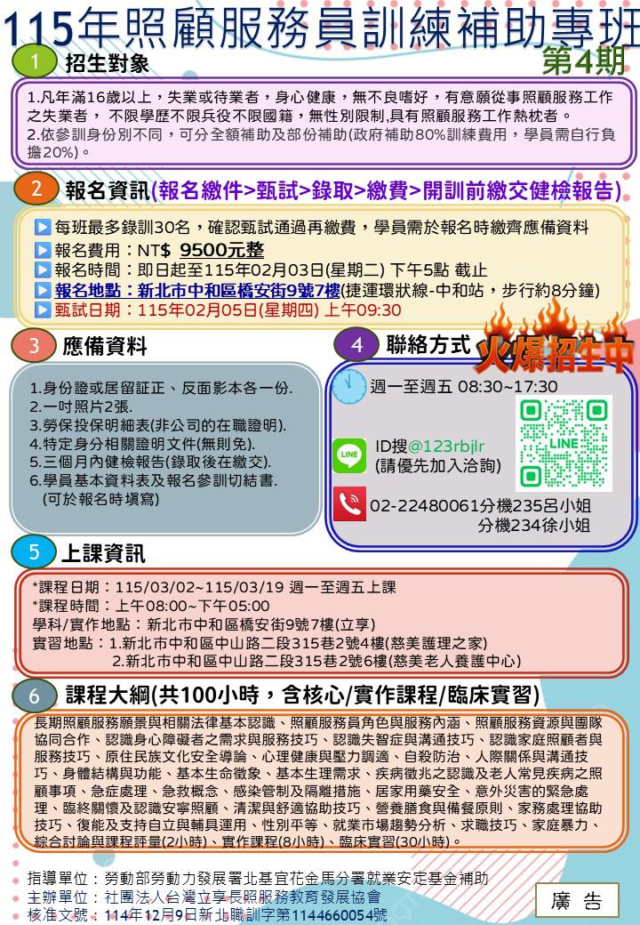 一年一度的政府補助培訓班課程已出爐囉,各位親朋好友想加入照顧服務員的朋友們,歡迎來報名哦~ 熱烈招生中~