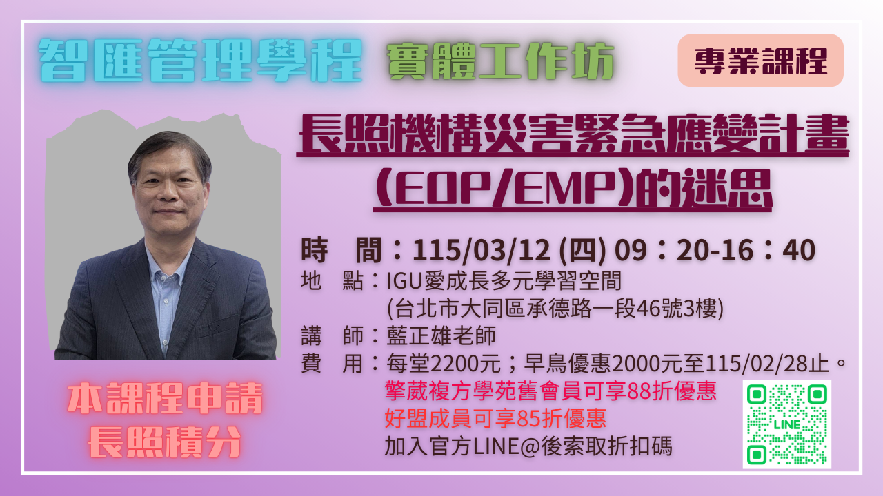 | 地點:臺北市大同區承德路一段46號3樓 (IGU愛成長多元學習空間) |