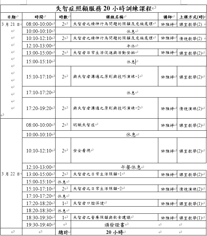 •課程名稱:失智20小時課程