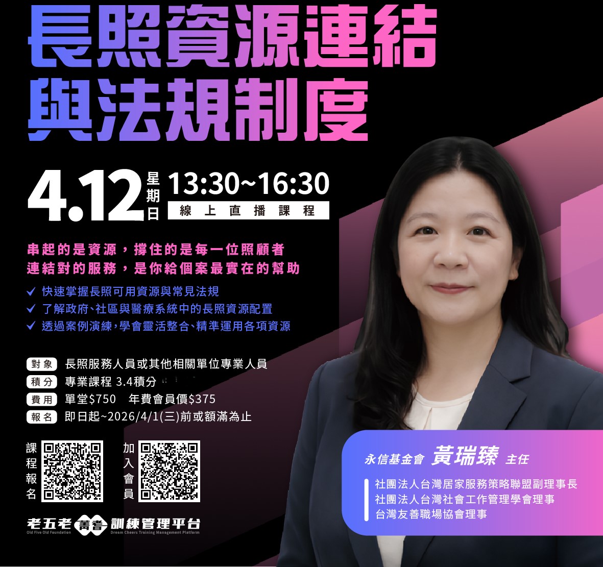權威講師:黃瑞臻 主任—長照政策與資源活用的第一線專家