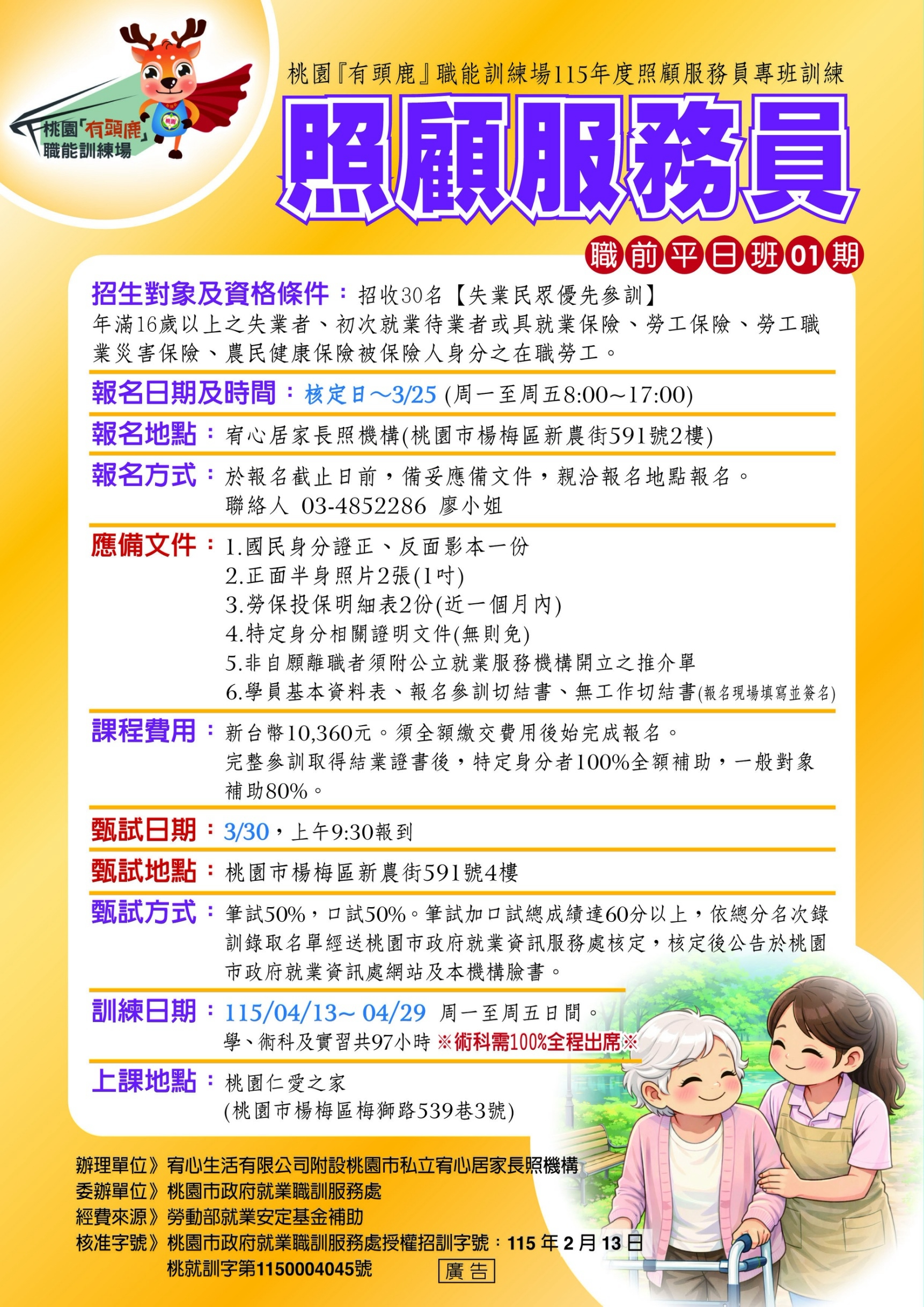 📢 115年桃園市「有頭鹿」 職業訓練場