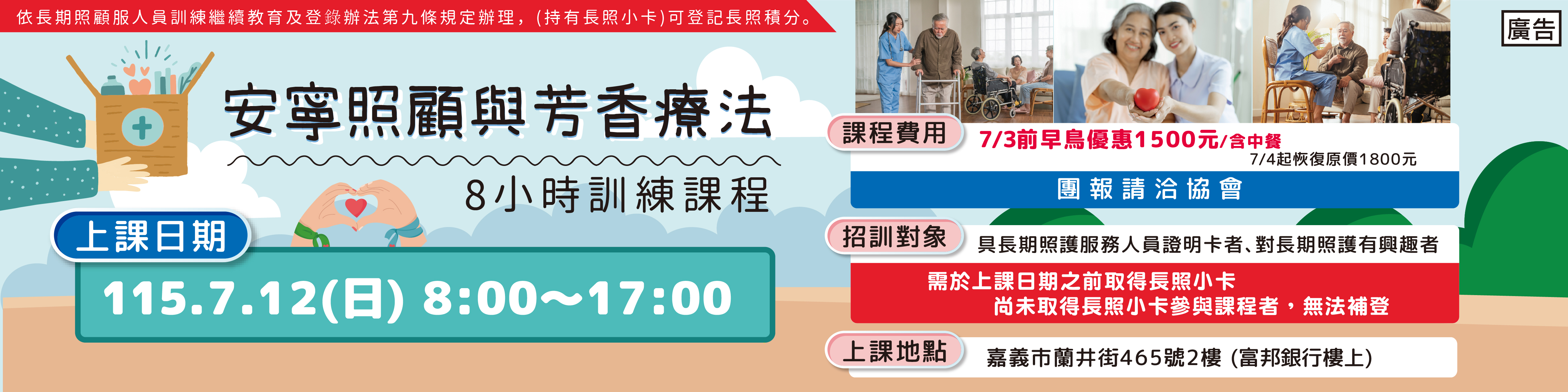 一、【參加對象】:1. 具長期照顧服務人員證明卡者【需於上課日期之前取得長照小卡,尚未取得長照小卡參與課程者,無法補登】2. 對課程有興趣之民眾