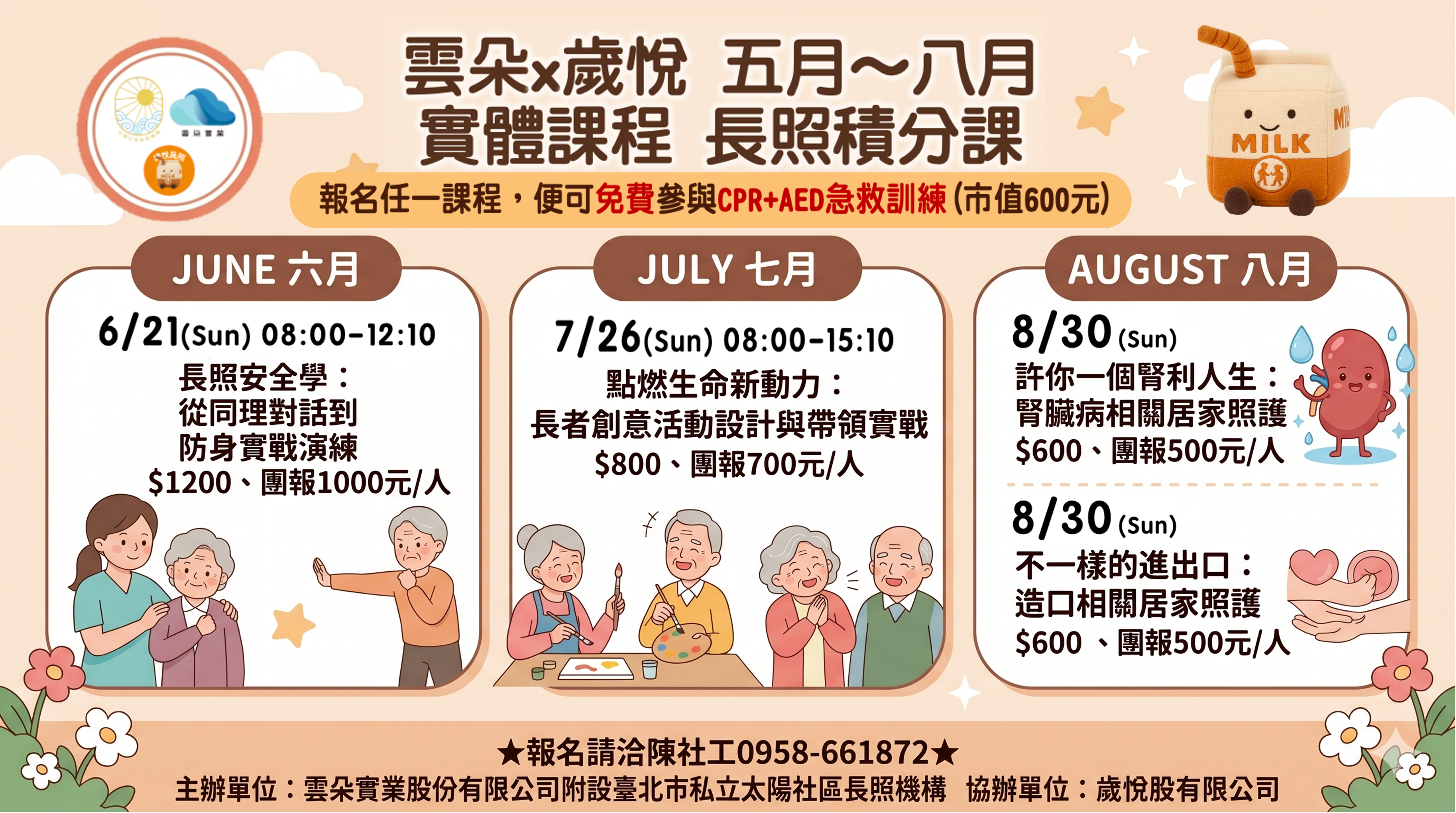 主辦單位:雲朵實業股份有限公司附設臺北市私立太陽社區長照機構
