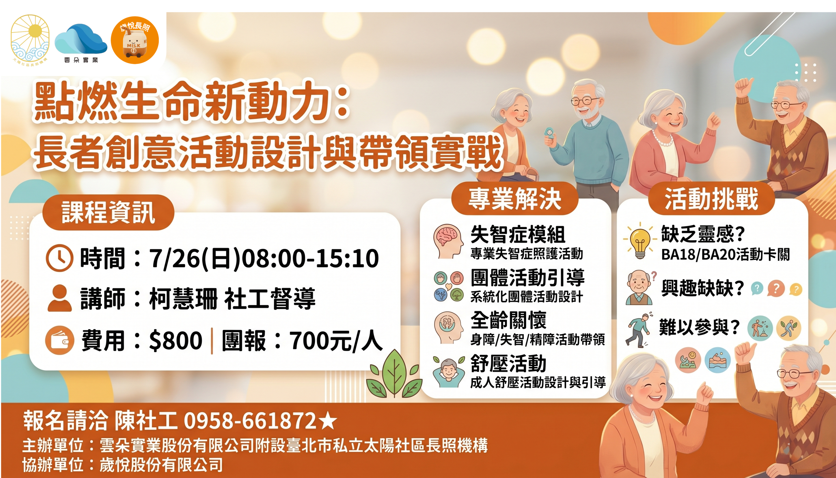 主辦單位:雲朵實業股份有限公司附設臺北市私立太陽社區長照機構